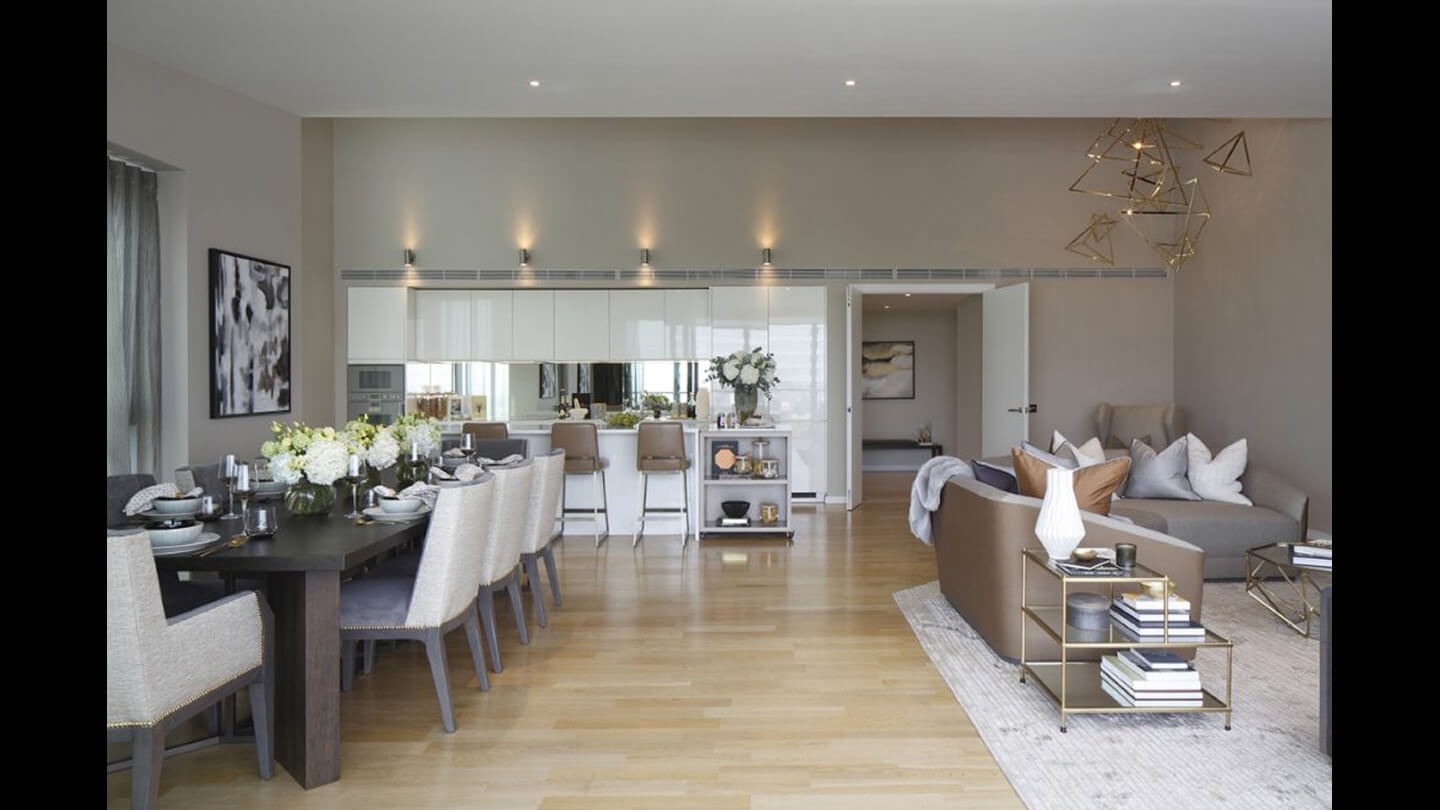 Với thiết kế thông minh, phòng khách ngay gần ban công rộng rãi tạo nên một dòng chảy ánh sáng tiếp nối một cách mạch lạc và có thể len vào mọi ngõ ngách trong nhà nhờ sử dụng nội thất thấp và màu cổ điển.